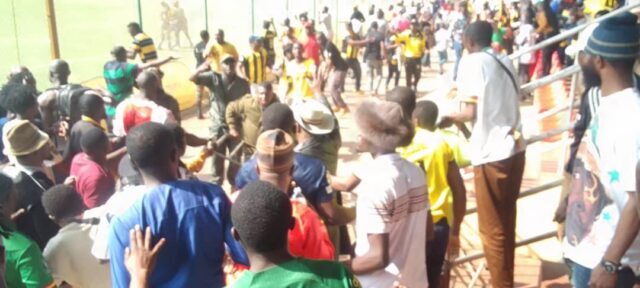 Lors de la rencontre comptant pour les demi-finales face à Union Sportive d’Abong-Mbang, le 16 août 2024 au stade de Ngoa-Ekellé à Yaoundé, les fans...
